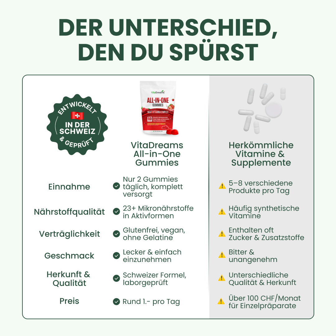Unsere Formel wird in einem Schweizer Labor auf Reinheit und Qualität geprüft. Jede Charge wird sorgfältig kontrolliert, damit du dich täglich auf sichere und hochwertige Inhaltsstoffe verlassen kannst.