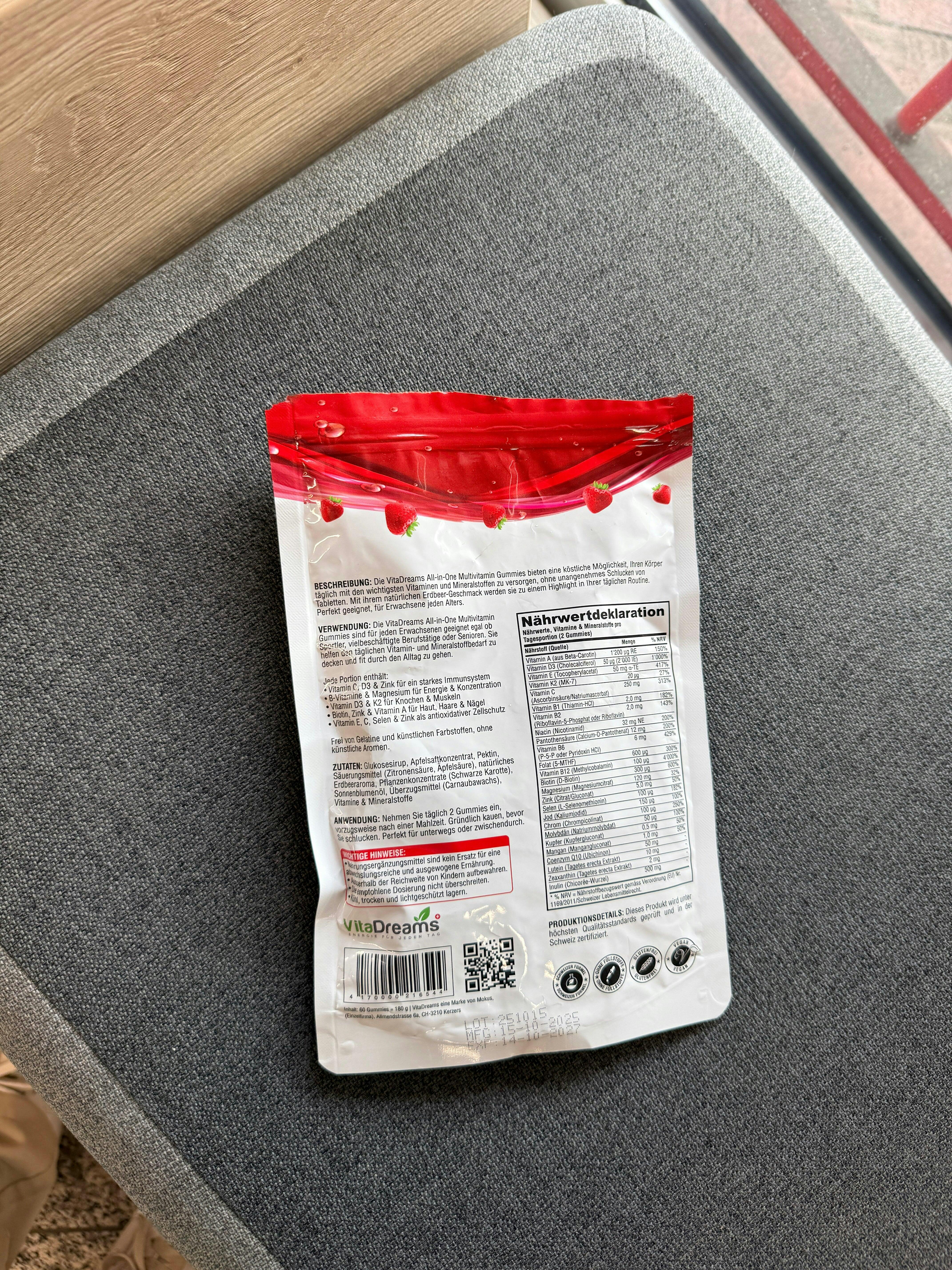 Bei vielen herkömmlichen Vitaminprodukten auf dem schweizer Markt werden günstige, synthetische Vitamine in sehr tiefer Dosierung eingesetzt. VitaDreams setzt stattdessen auf natürliche Aktivformen in sinnvoll abgestimmten Mengen, kombiniert in nur zwei fruchtigen Gummies pro Tag. So bekommt dein Körper wirklich das, was er braucht, ohne Tablettenstress oder Pulverchaos.